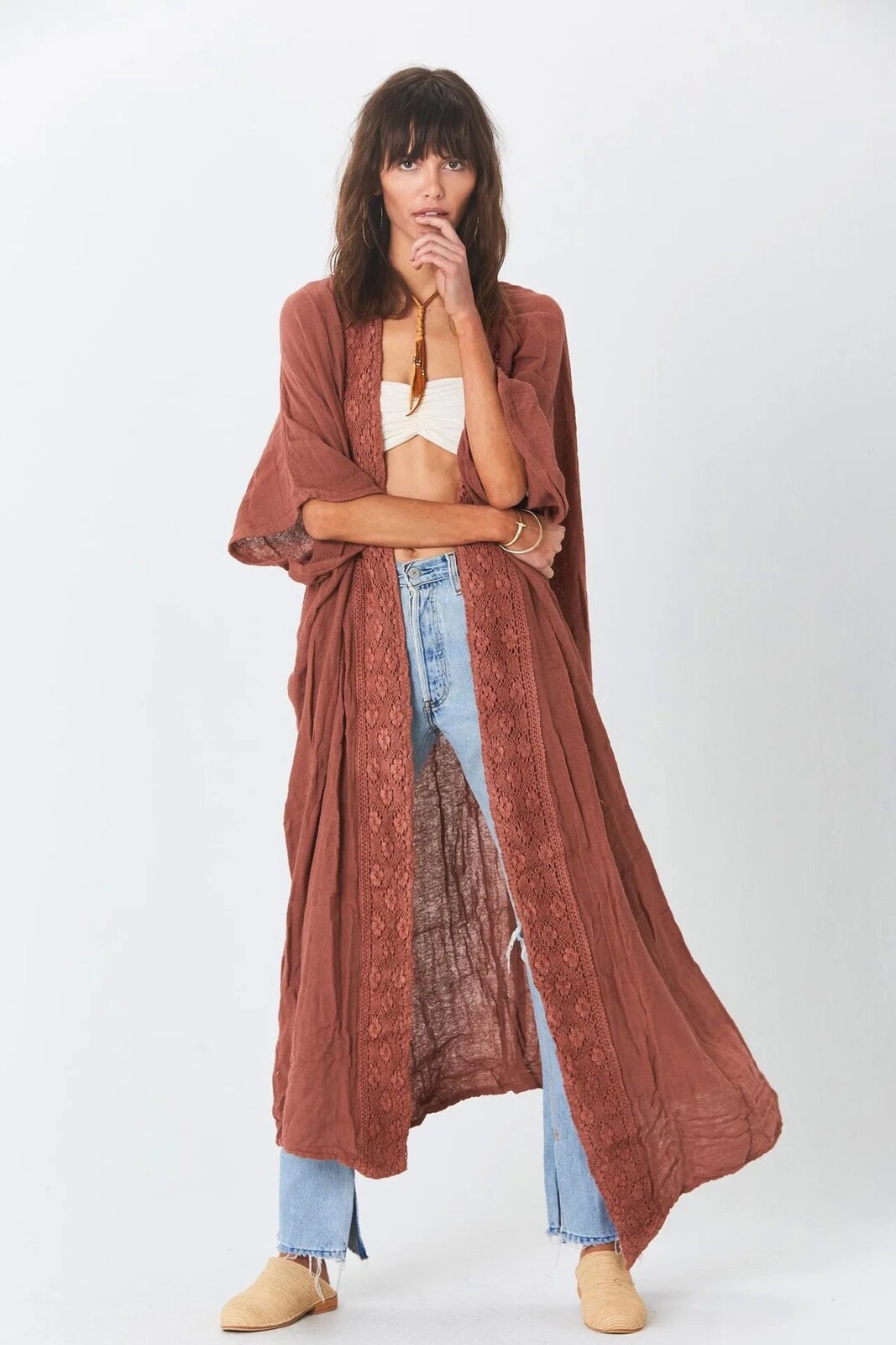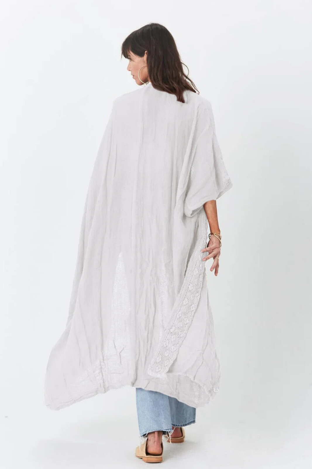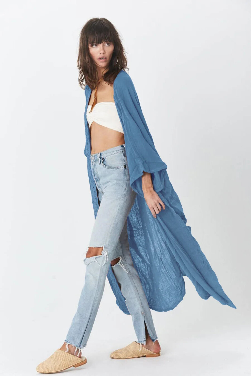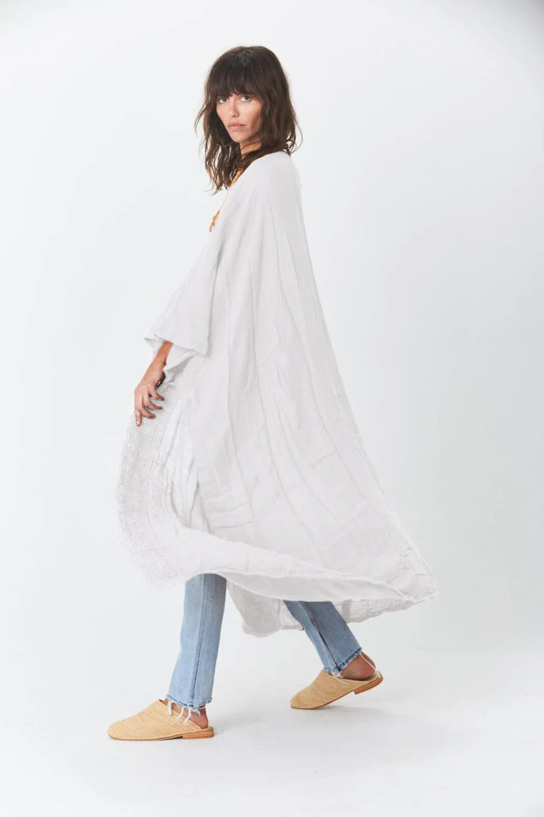 With all these features neatly lined up, it might sound intimidating - but there’s no pretence here, just easy layering options and a gentle, breezy sheerness that works as hard on hot afternoons as when you’re lounging at home. Whether thrown over denim cutoffs for brunch or lounged in by the firepit at midnight, it brings as much drama as you do. And maybe more.