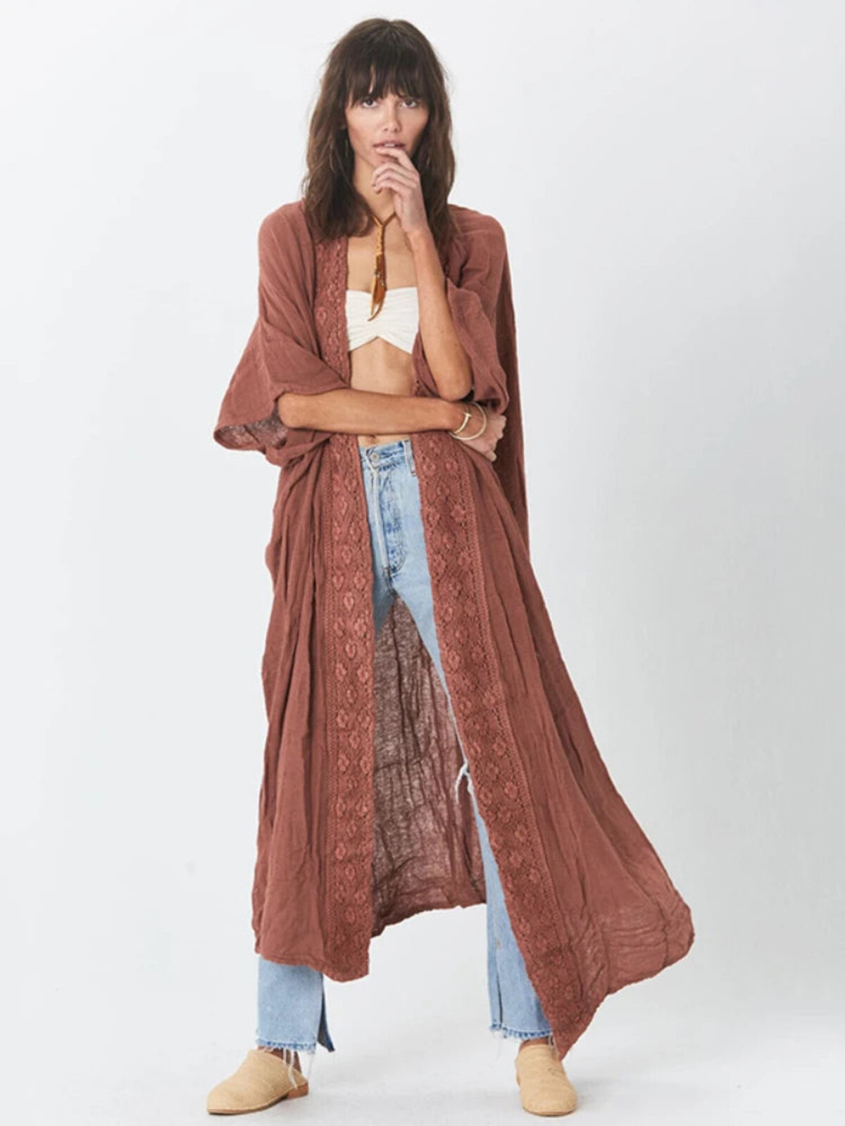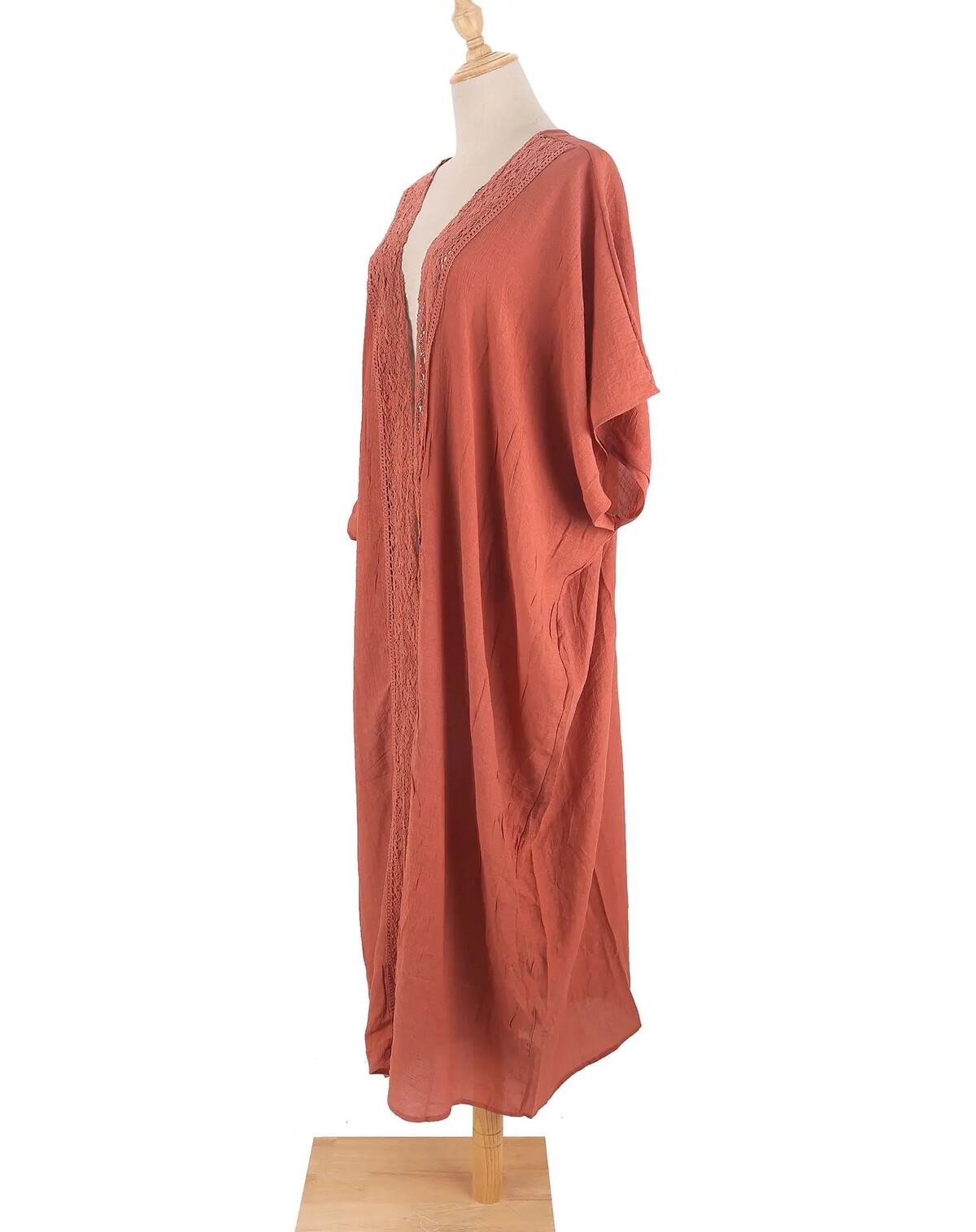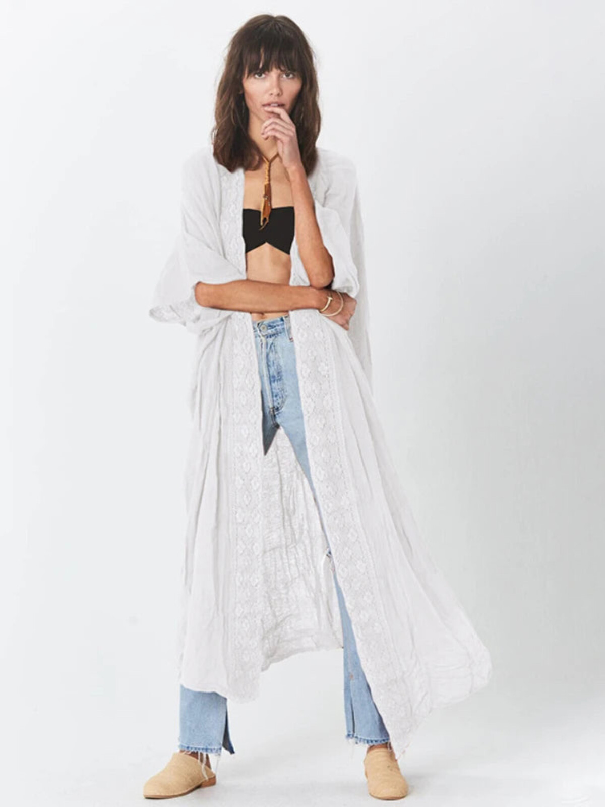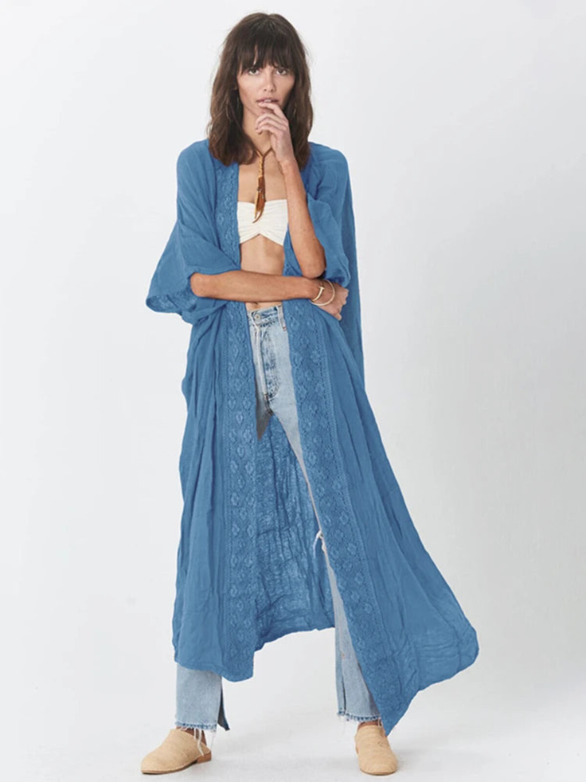 With all these features neatly lined up, it might sound intimidating - but there’s no pretence here, just easy layering options and a gentle, breezy sheerness that works as hard on hot afternoons as when you’re lounging at home. Whether thrown over denim cutoffs for brunch or lounged in by the firepit at midnight, it brings as much drama as you do. And maybe more.