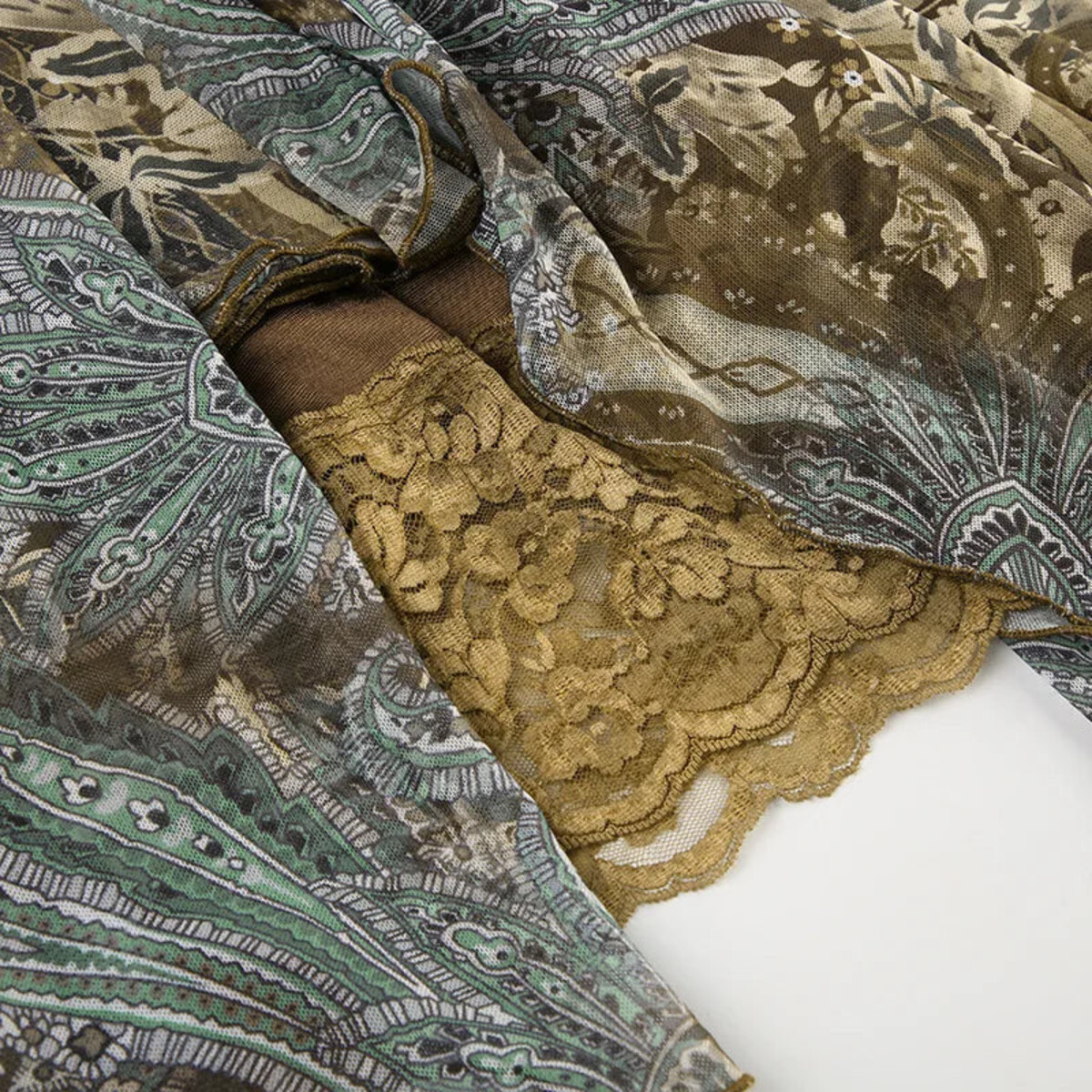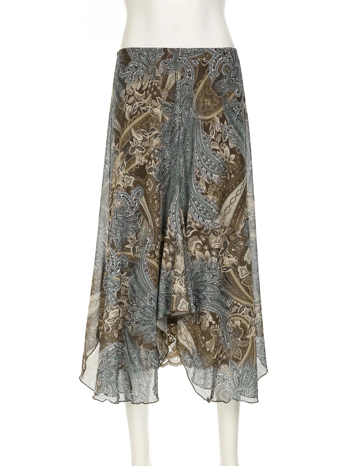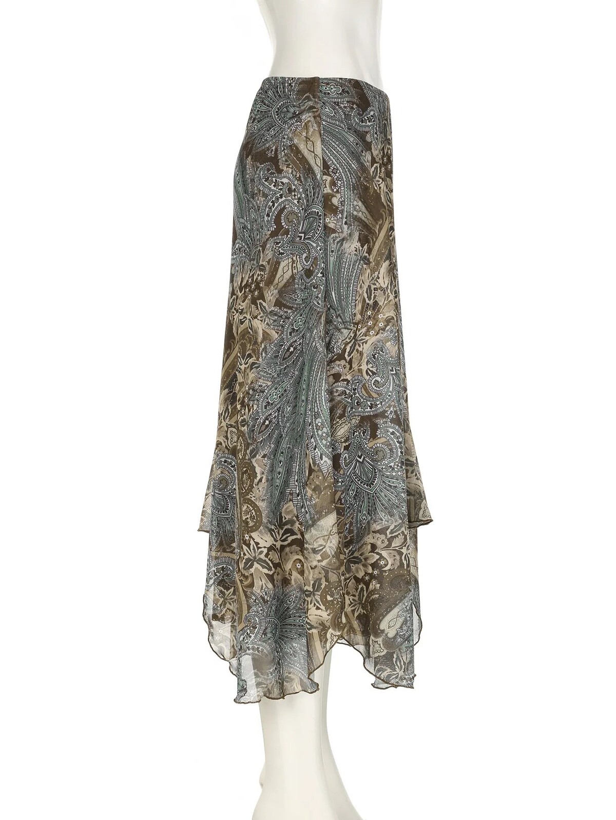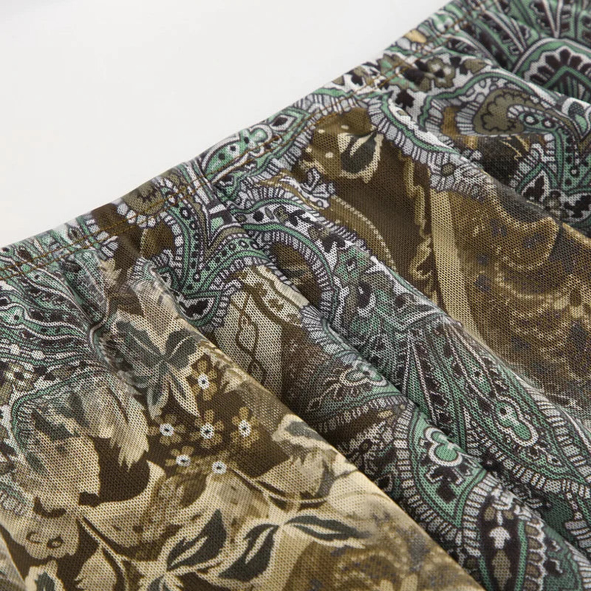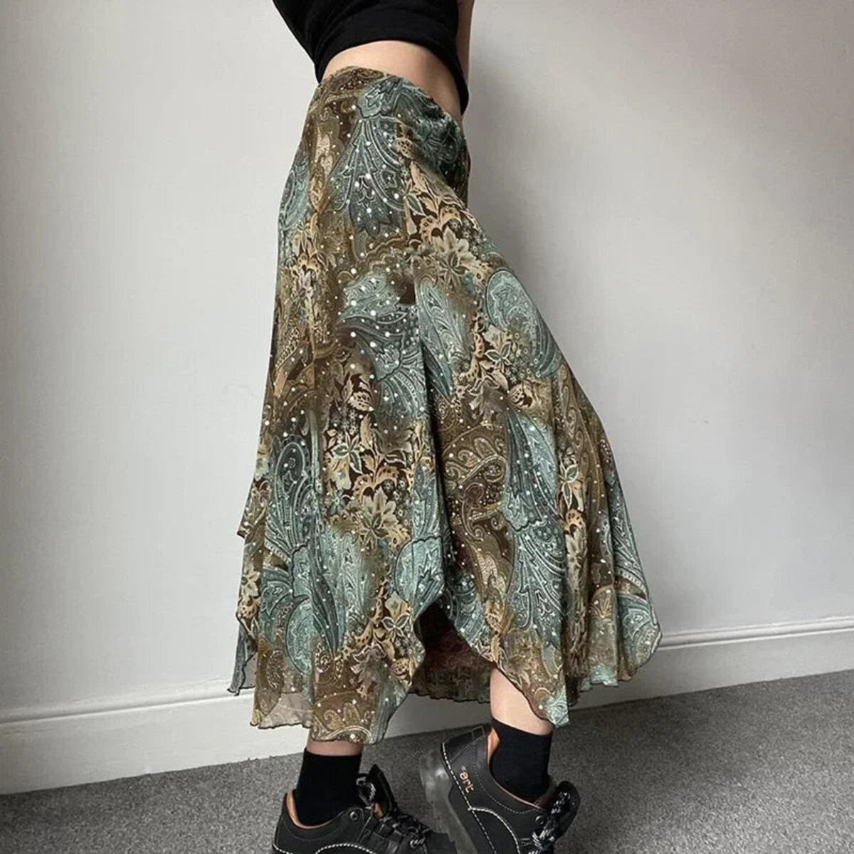 Like something straight out of a midnight garden party or perhaps the soft-lit, day-after ritual, this skirt is what happens when floaty whimsy collides with serious craftsmanship. The handkerchief hem makes you want to twirl - and even if you’re not the “twirly” type, it’ll do it for you when you walk anyway. There’s a soft paisley mesh overlay that gives little glimpses of skin with its nearly-sheer cutouts - and really, no one ever minds a little mystery. Sprinkled in there are small rhinestones for when you want to catch the light but aren’t up for sequins (who is on a Wednesday?). The stitched-on floral lace underlayer adds just that bit more coverage and textural contrast at the hem, and here’s the kicker - it comes in complementing hues to the overlay, so they never clash.