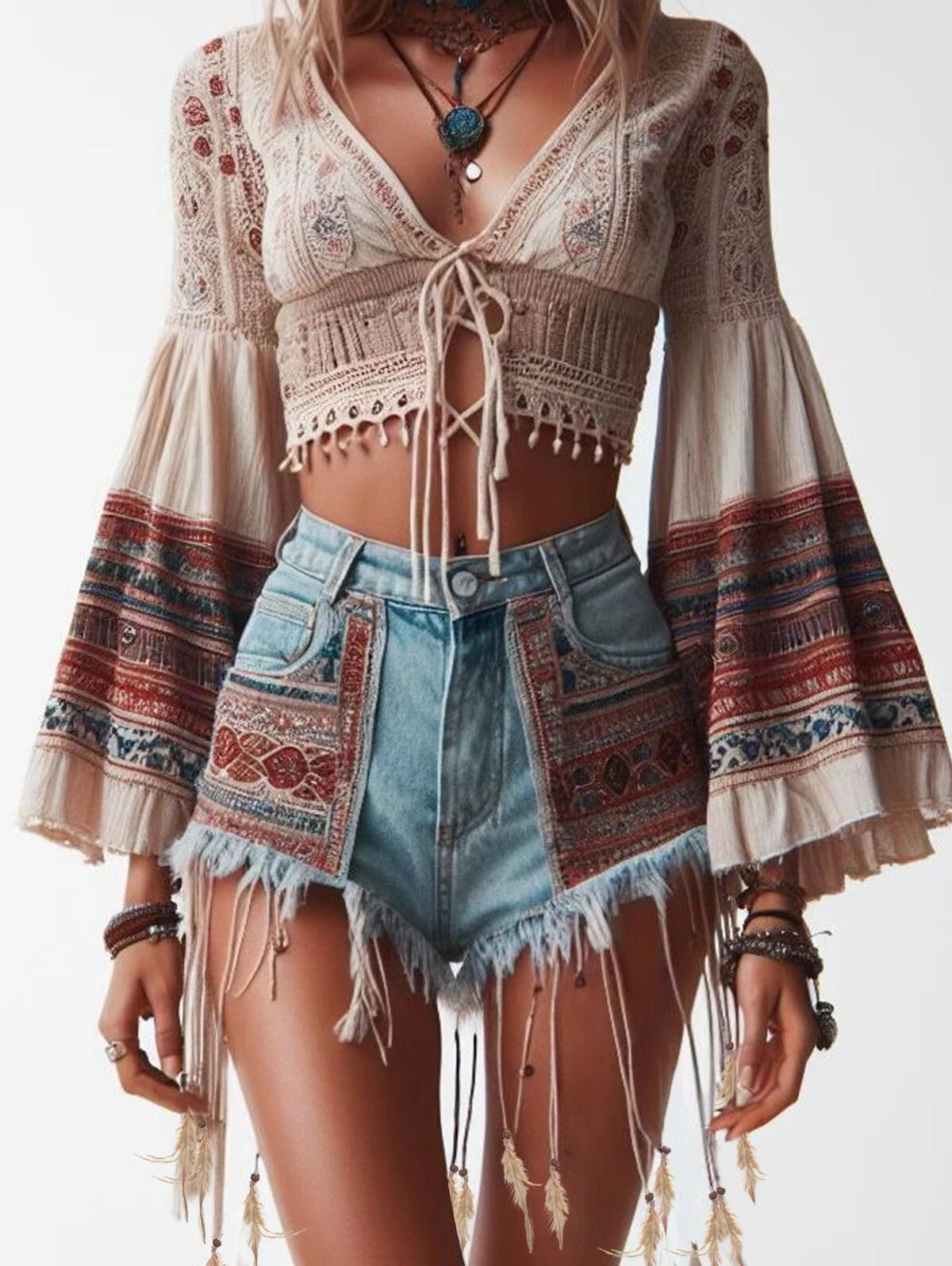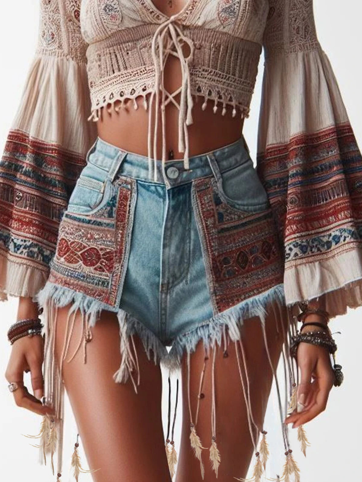 All the boho-chic, festival-ready charm you could ask for, with floaty sleeves and flirty denim in one unforgettable outfit.
