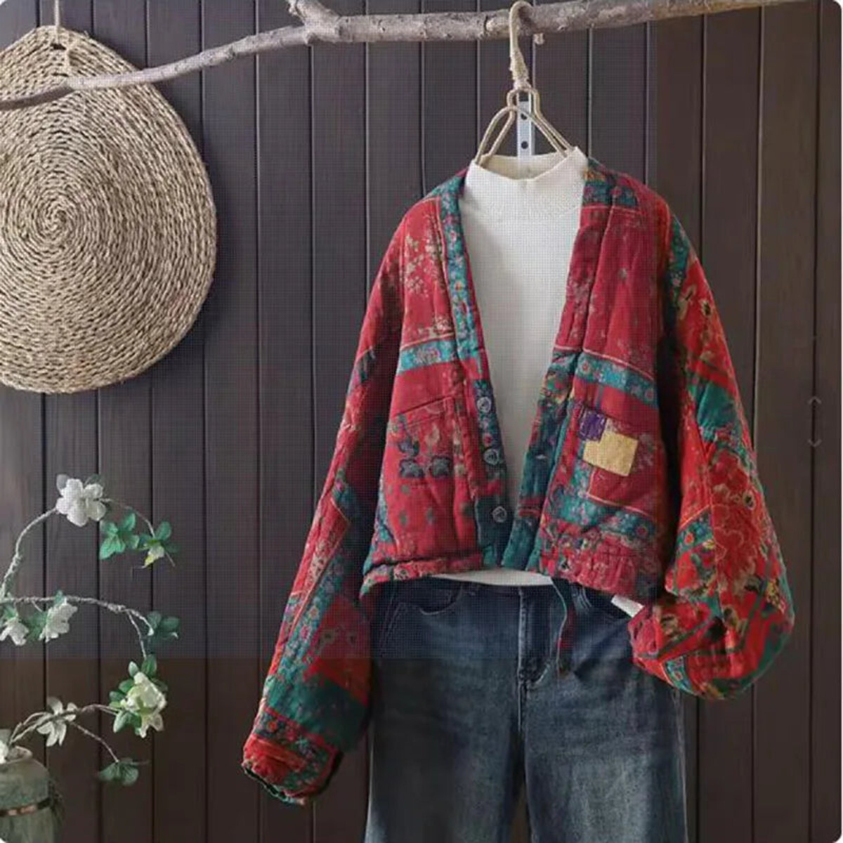 If you ever wanted to look like you just emerged from a transcontinental road trip - but with all the artful coolness and none of the dirt from sleeping on back seats or dodgy motels - this is it. The cropped jacket in question is what would happen if your nanna's patchwork quilt, a heap of vintage florals, and paisley from one of those global markets had a very festive baby. With its relaxed, slightly oversized fit and drop shoulders, it gives off that nonchalant creative energy that says 'I make my own rules and prefer to be comfortable while doing it'. And who can resist a one-of-a-kind print mash-up that lands somewhere between boho, global nomad, and craft geek?