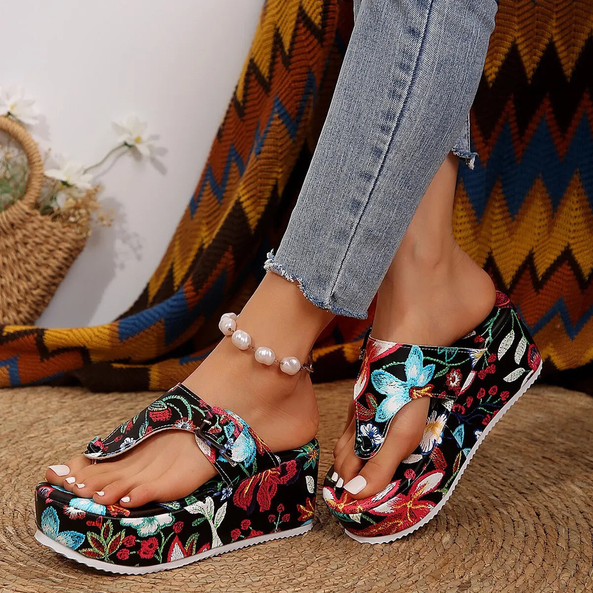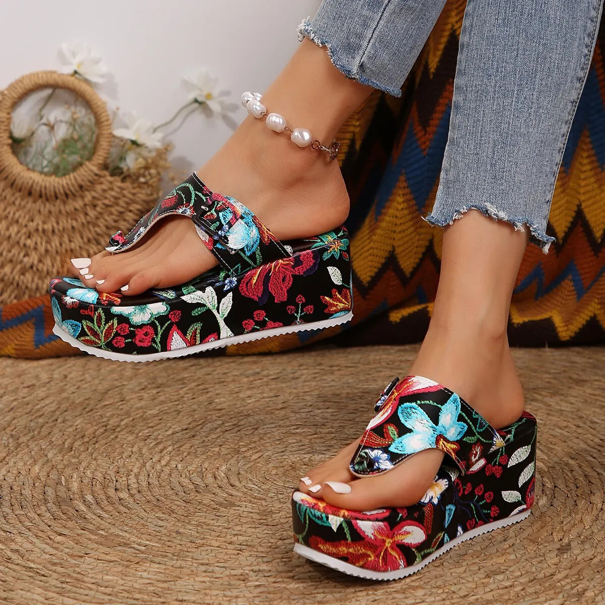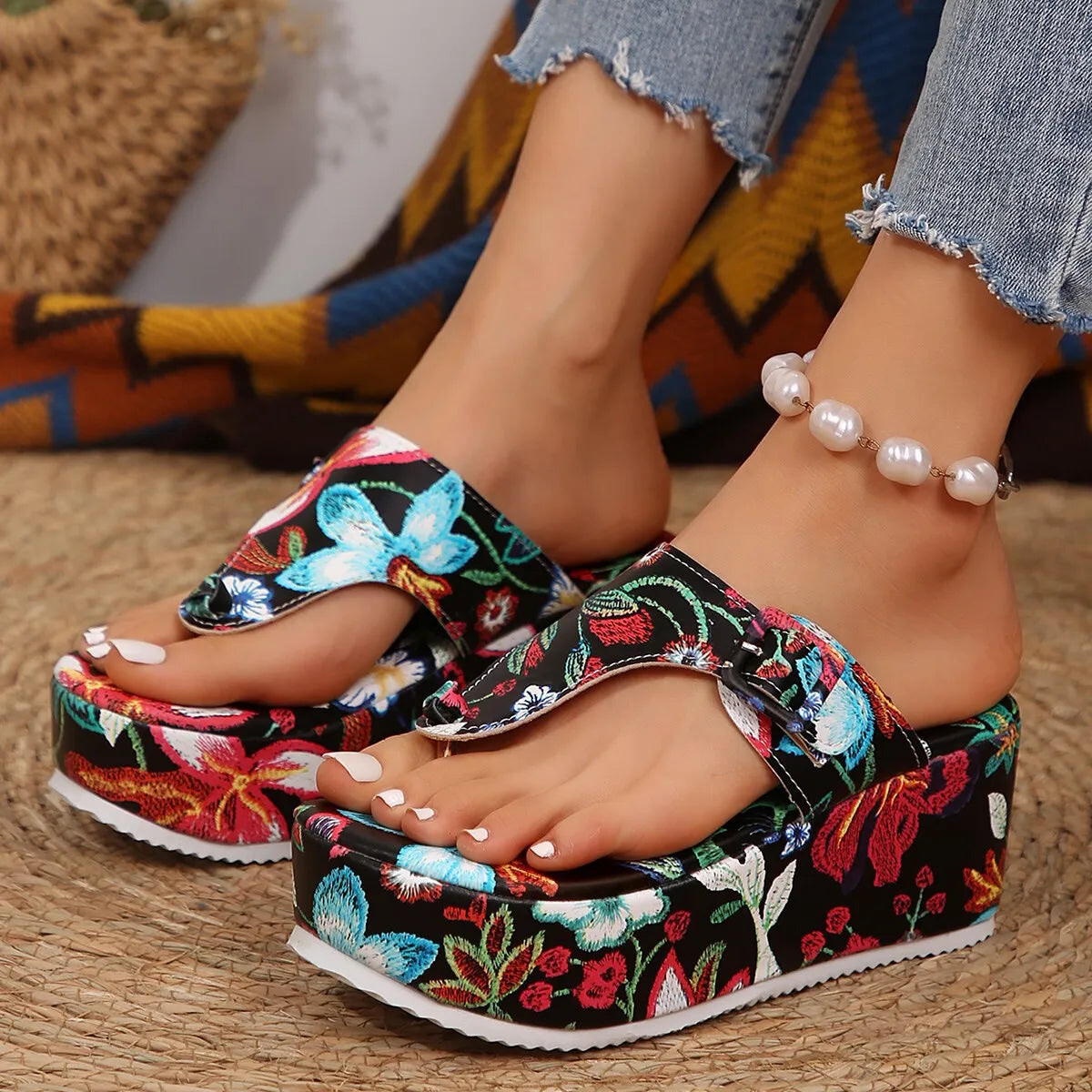 Make a statement about summer style with these wedge flip-flop sandals - loud enough to drown out the sound of your neighbour's lawnmower. Whoever said florals were reserved for frocks and hats clearly never stepped into a pair of these wedge flip-flops. With a print as bold as your favourite festival shirt, and a wedge that gives off “elevated casual” energy, these are for the ones who want their feet to do more than just walk - they demand to be noticed. Because let's be honest, why should shoes have to slink away quietly under jeans and skirts?