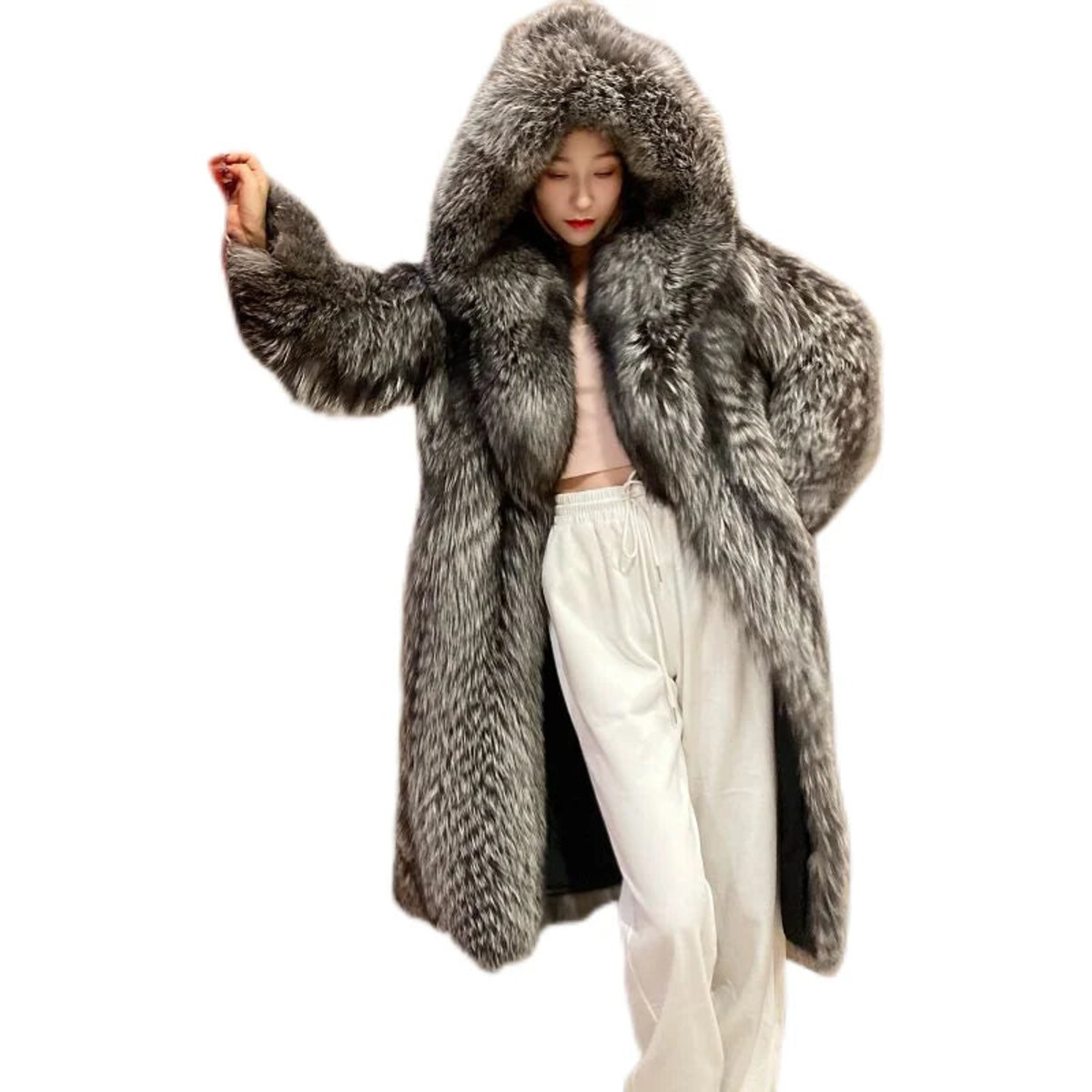 The oversized hood is not only incredibly chic, but also practical for keeping your head and ears warm on even the coldest of days. The thick material and full-length cut ensure that you'll be cozy and comfortable all winter long. And let's be real—the silvery-grey colour is the kind of neutral that goes with everything but still manages to make you stand out from the crowd. This is truly a coat for those who want to look and feel like royalty.