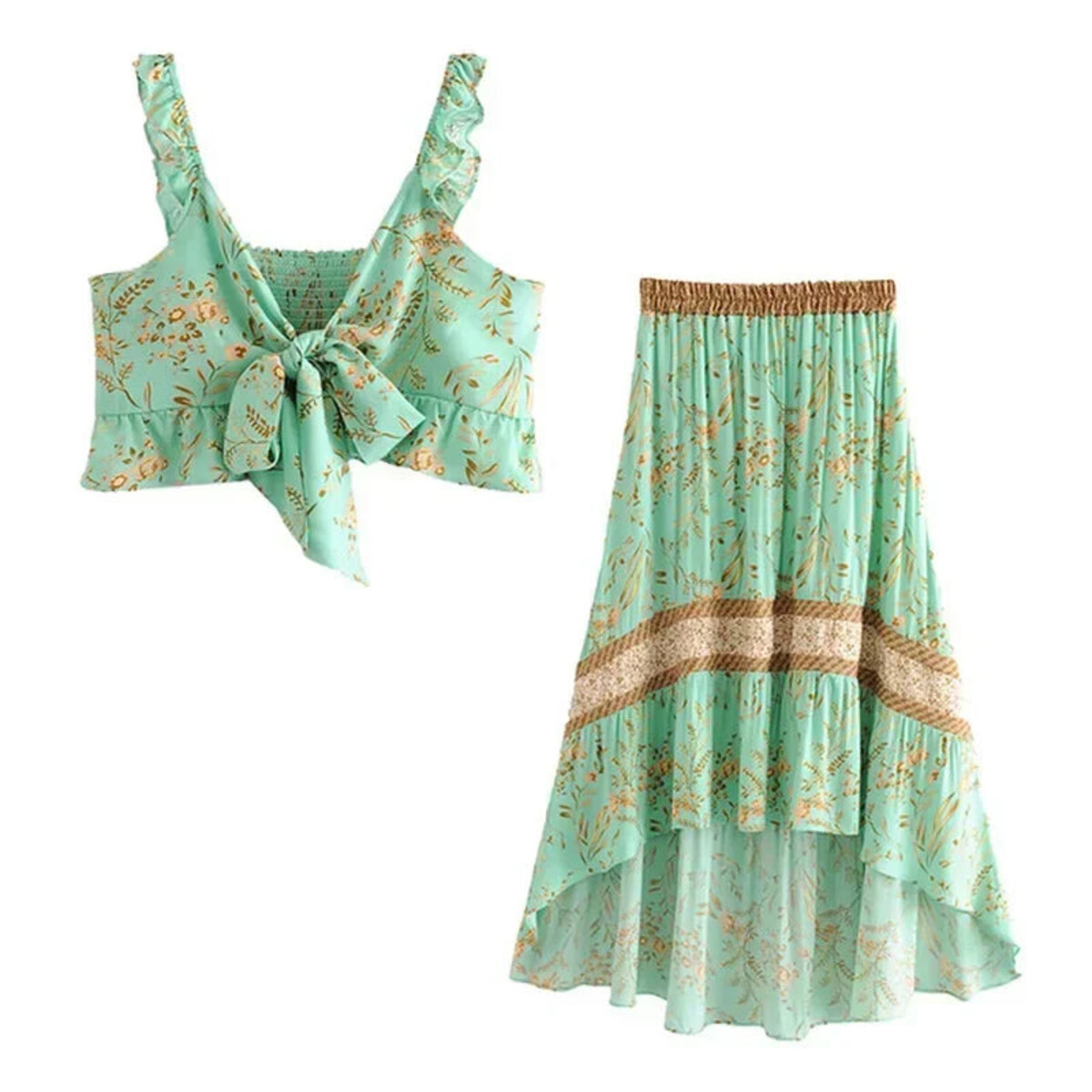 Light, floaty layers give you plenty of room to move around and thrive in the sun – there’s something so freeing about swinging your skirt in the sun when your arms are untethered by billowy short sleeves. And there’s no shortage of those here. They also have lovely contrasting trims that match the neckline, waistline, and the deliciously placed bow tying it all together at the front.