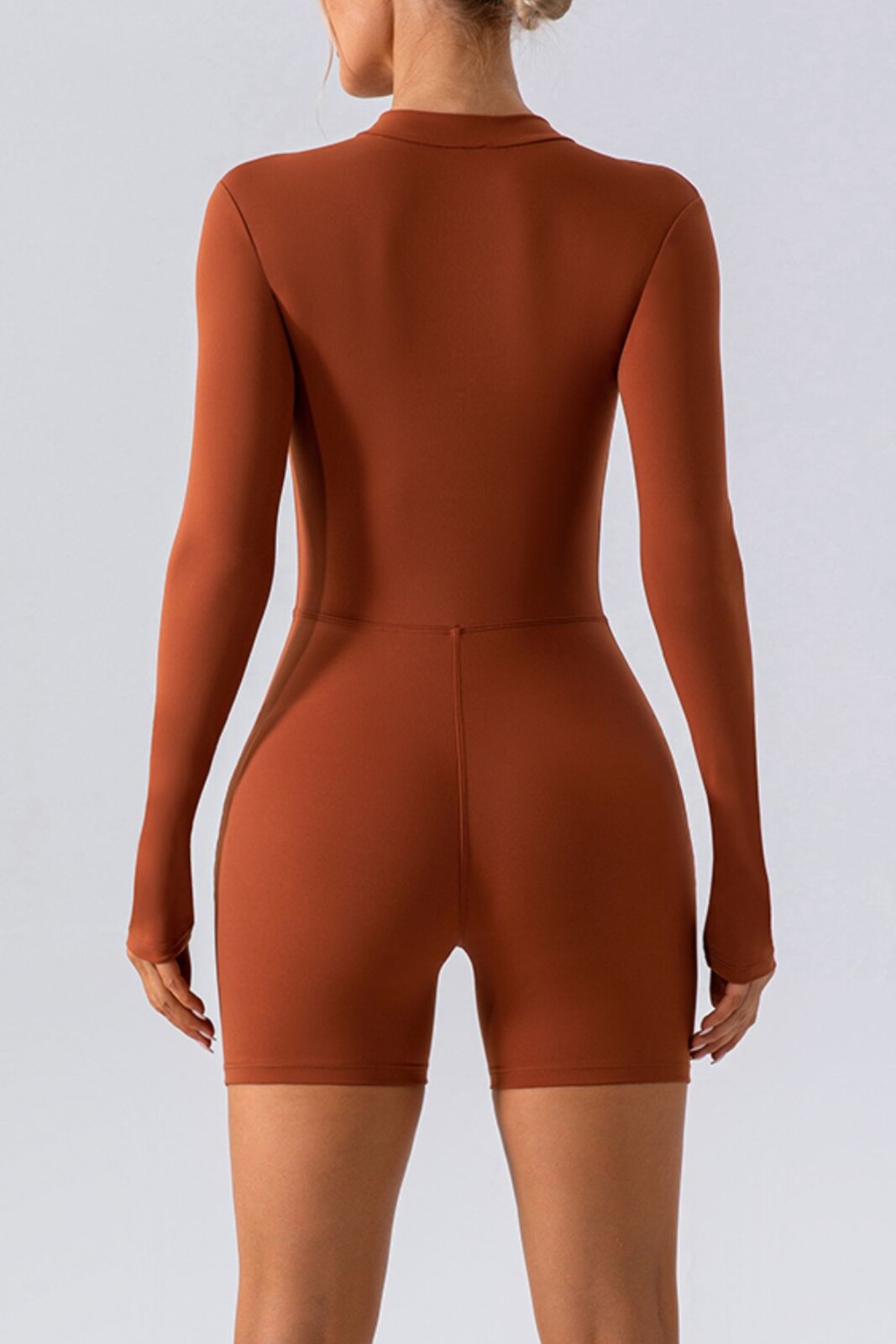 Whoever said sporty can't be stylish clearly hasn't seen this fitted, zip-up long-sleeve romper - it's giving sleek, chic, and ready to go.