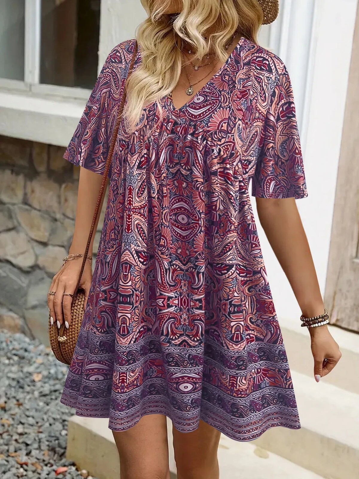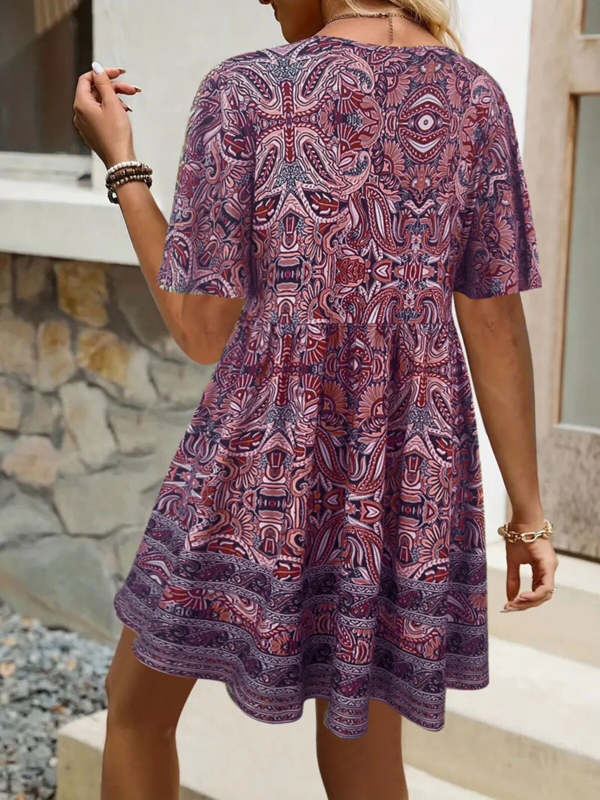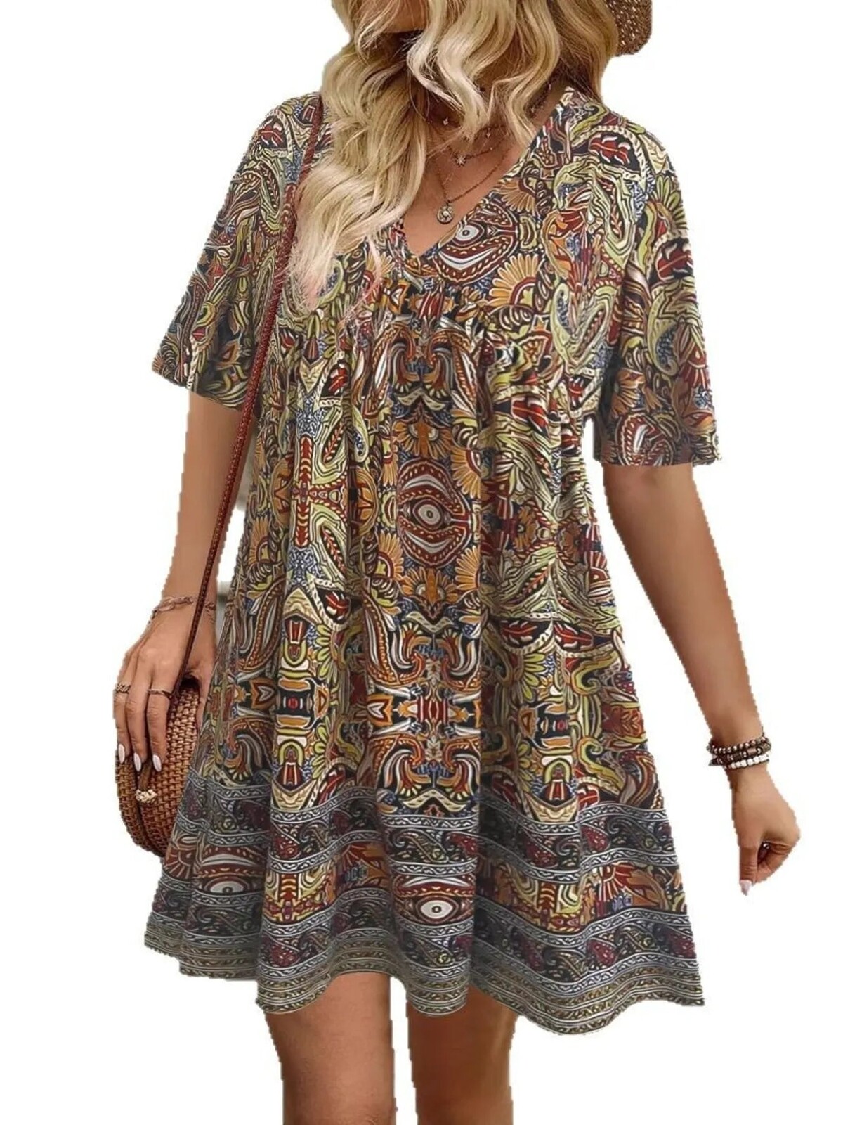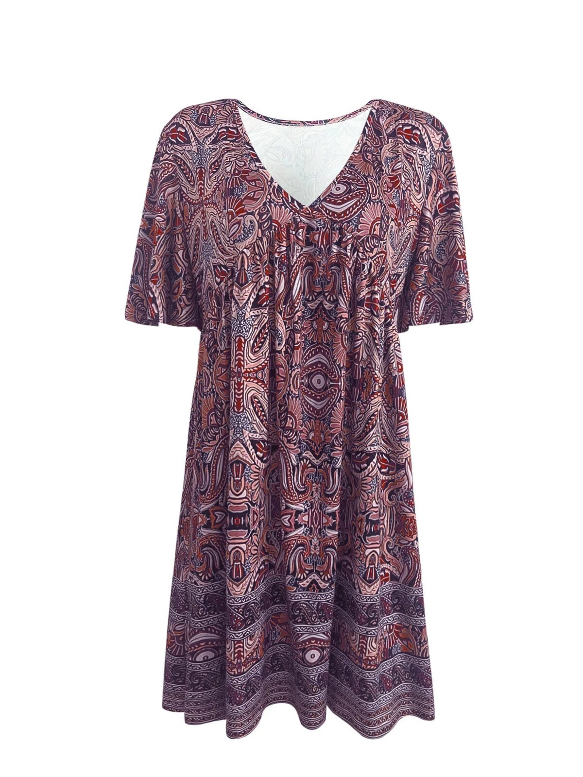This dress is for those who believe subtlety is highly overrated. All-out, full-tilt maximalism is the look here. And doesn’t it do it well? The Mystic Bloom Dress is a real art lesson in print and pattern-making, from the psychedelic paisleys to the mirrored geometric motifs that are all thoroughly unique but somehow work together beautifully. The border print really anchors the design visually, so it doesn’t end up looking too free-for-all. And even if you don’t care about any of that - it has to be said that this dress wears like a dream. It’s completely unrestrictive and flowy, with a loose A-line silhouette, short length, elbow-length sleeves, and room to spare. The hemline falls mid-thigh on most heights, so it can be paired with anything from skinny jeans to leggings to mid-calf boots.
