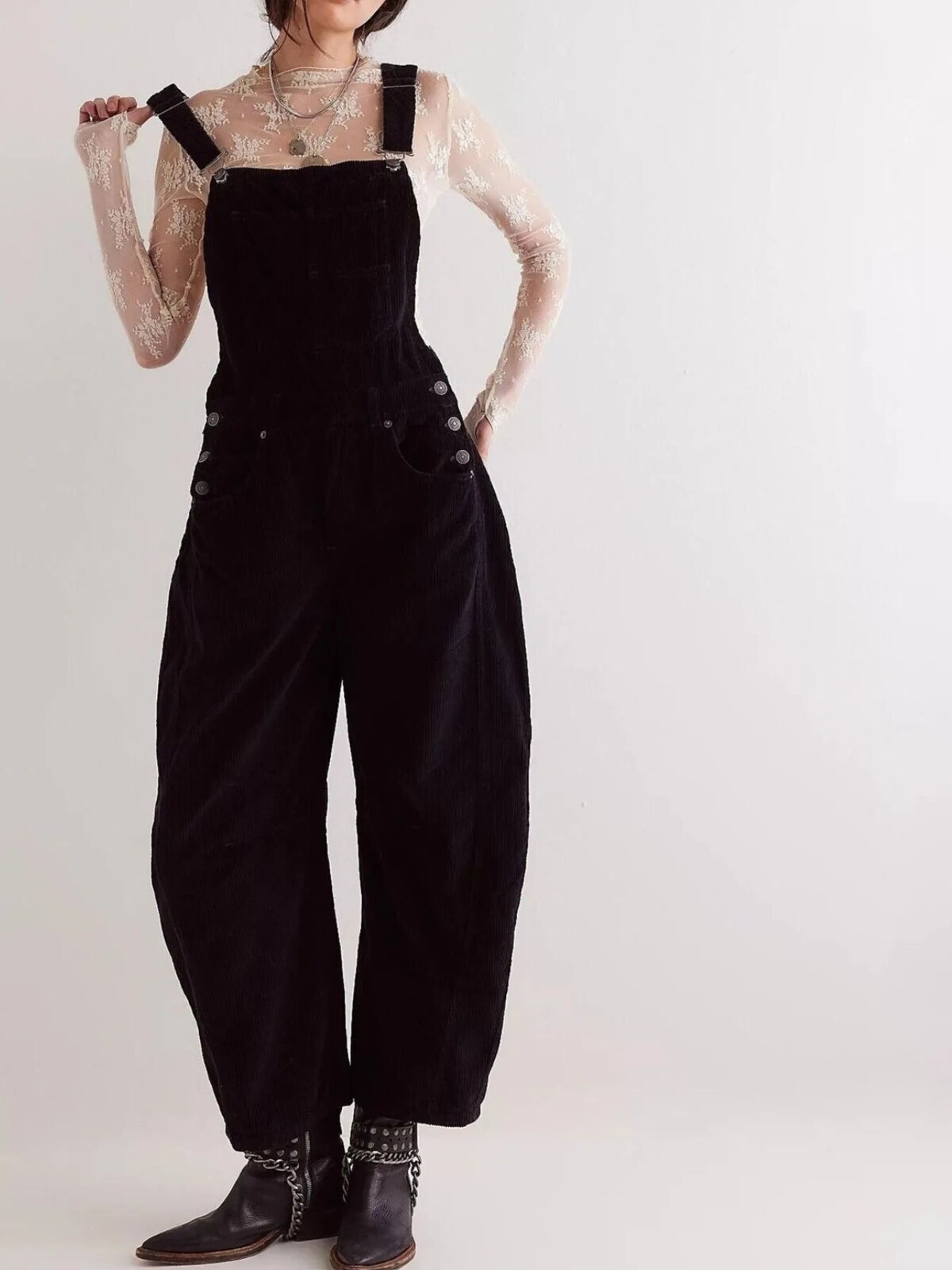 Classic workwear takes a delightfully plush detour in these relaxed corduroy overalls. There’s a no-nonsense vibe about that slightly slouchy, wide-legged cut - just the thing for bringing a vintage edge to everyday comfort. The vertical ridges add a textural punch and promise a silhouette that’s both roomy and structured. The deep front bib pocket is spot-on for tucking away your best mate’s love letter, and those two big hip pockets can just about fit snacks and spare change without breaking a sweat.