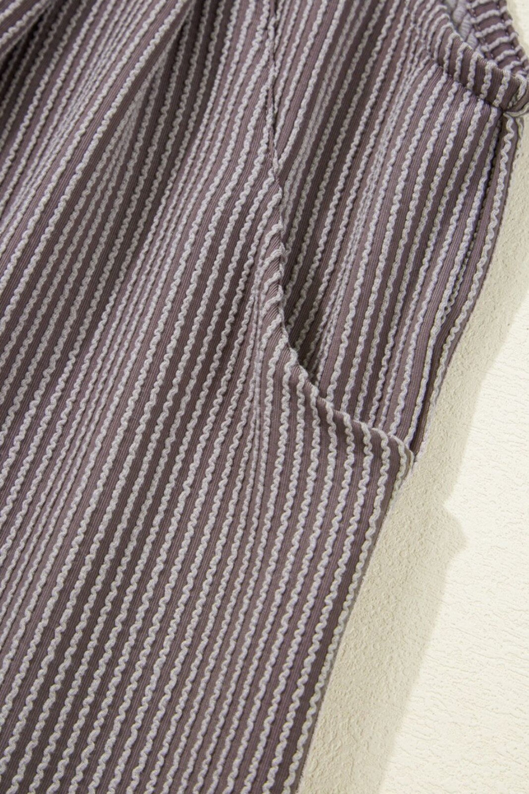 There's something about a jumpsuit that says, "Effortless? Sure. But have you seen my pockets?" There's a certain art to nailing relaxed and rustic without looking like you've been up since dawn tending to a flock of, well, anything. Wide-legged and unapologetically loose, this beauty floats with all the breezy bohemian insouciance of someone who spent all morning picking wildflowers – without the allergies. The shoulder straps are thick and wide for proper layering (so nothing cuts in unflatteringly), and those adjustable ties let you channel your inner Girl Guide knot virtuoso. Apron styling at the front and back keeps things delightfully offbeat, while two large angular patch pockets are there to carry everything short of existential angst. That clever striped effect? It’s raised and textured - almost corduroy territory but softer and with a less retro-muso vibe. This is a one-piece that reads as both functional and fun - actually roomy, genuinely comfy - yet manages to convince everyone it’s all wildly intentional.
