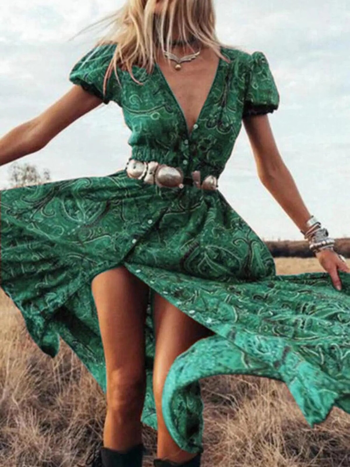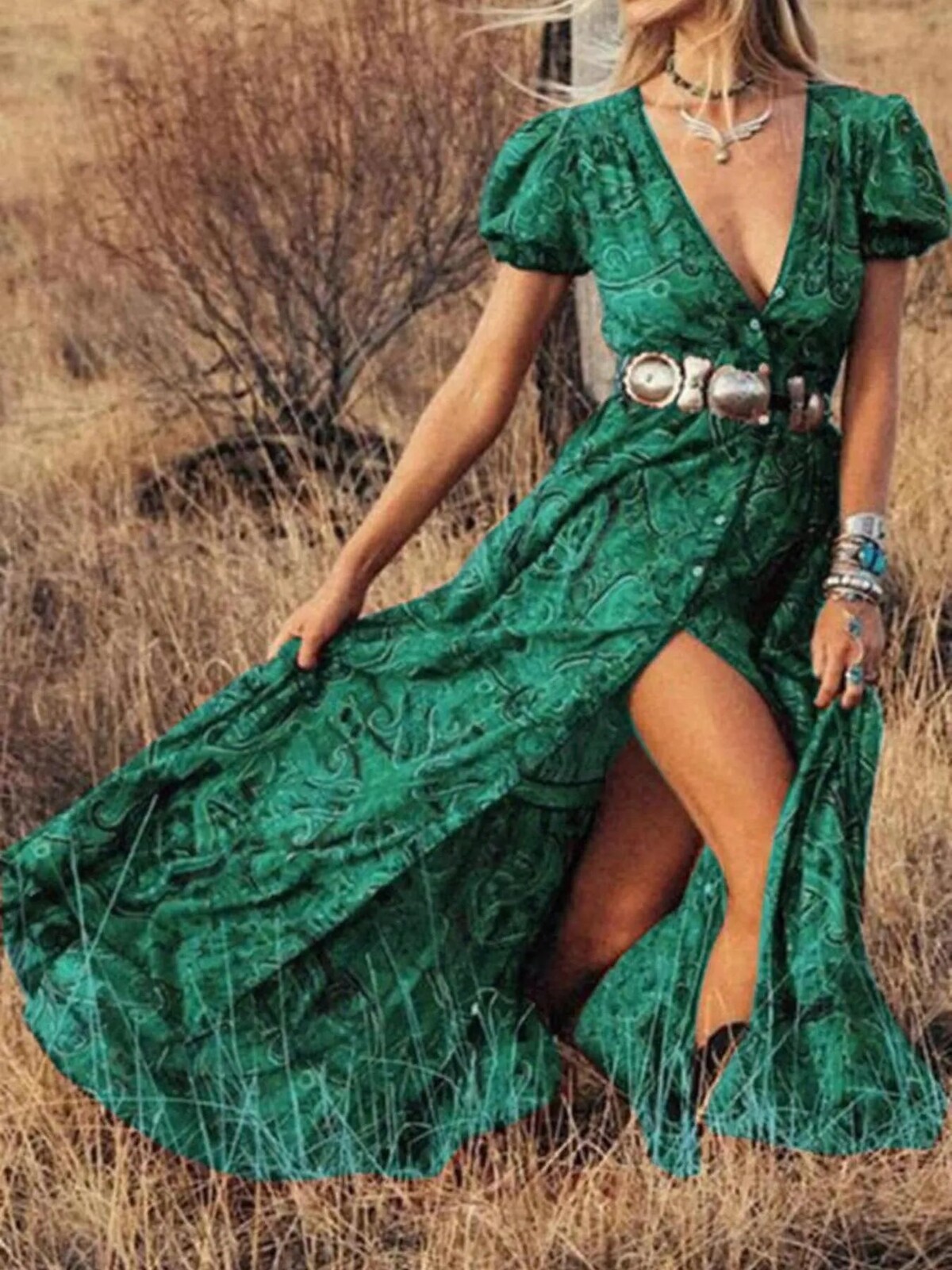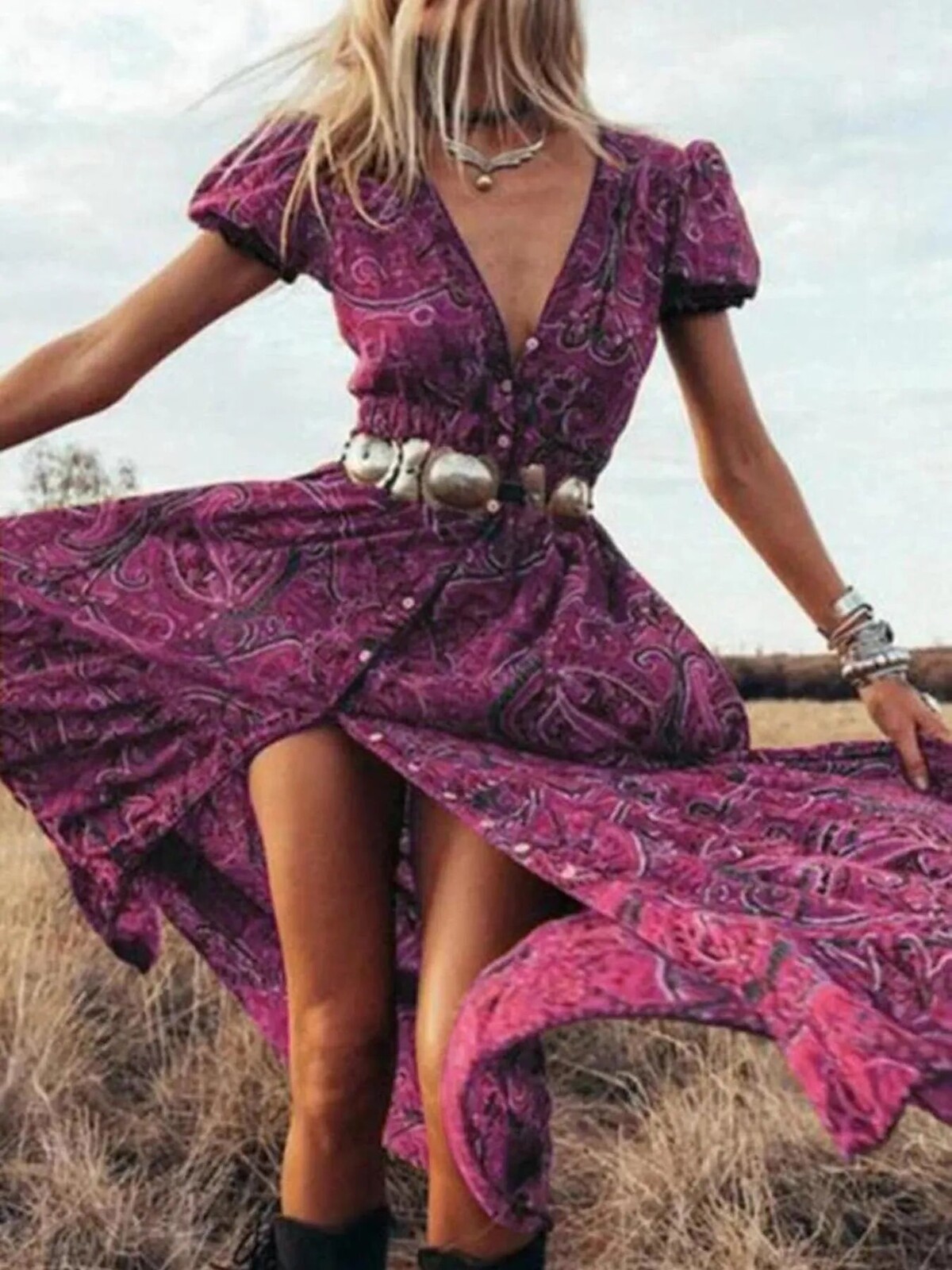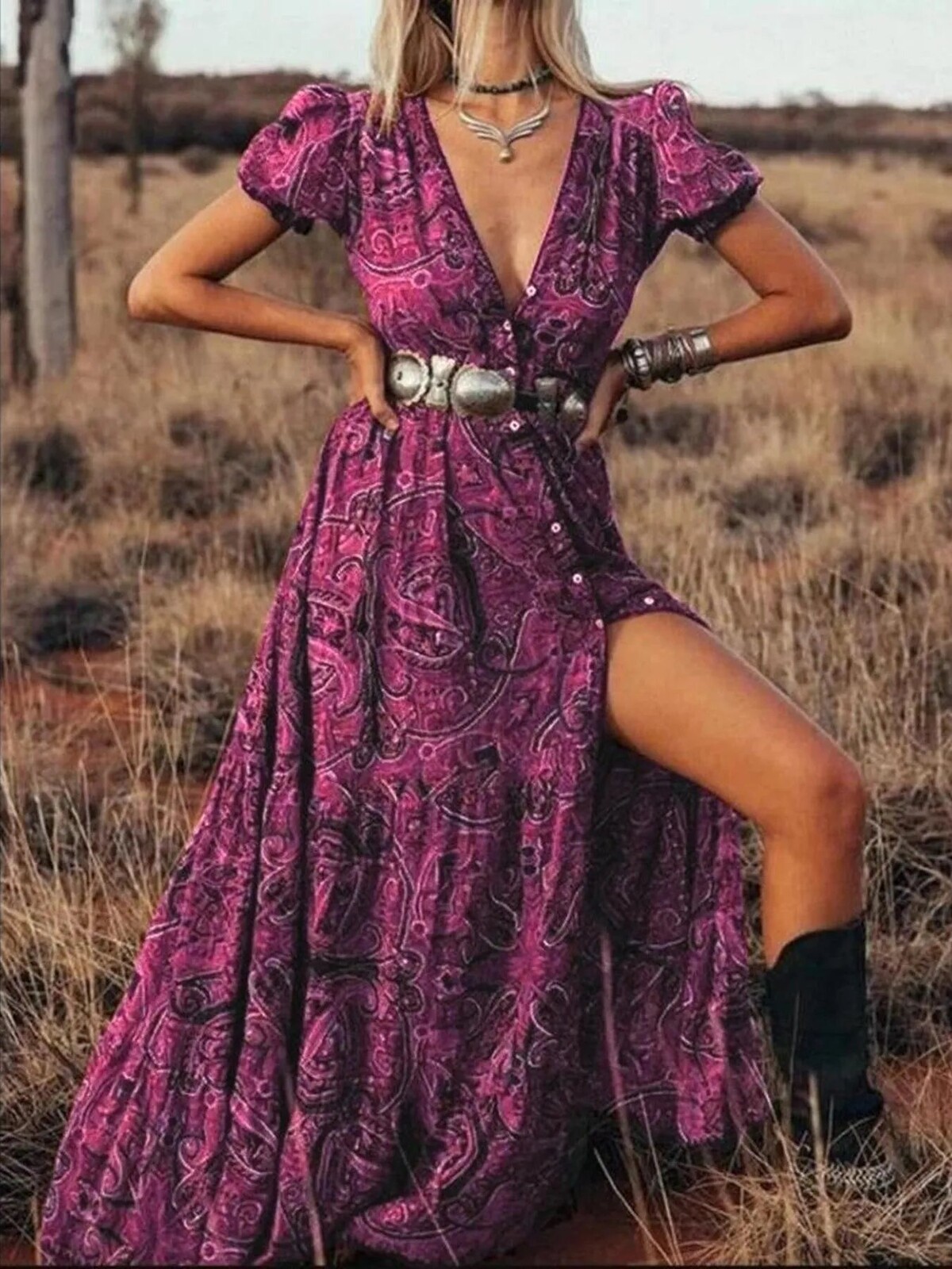 The swirling paisley print is intricate but not over-the-top. Perfect with cowboy boots or bare feet, depending on whether you’re heading to the local markets or waltzing across your living room. No stretch but plenty of comfort in its soft fabric - wear it out for fancy dinners or just a day outdoors… perhaps even an impromptu photo session in your backyard.