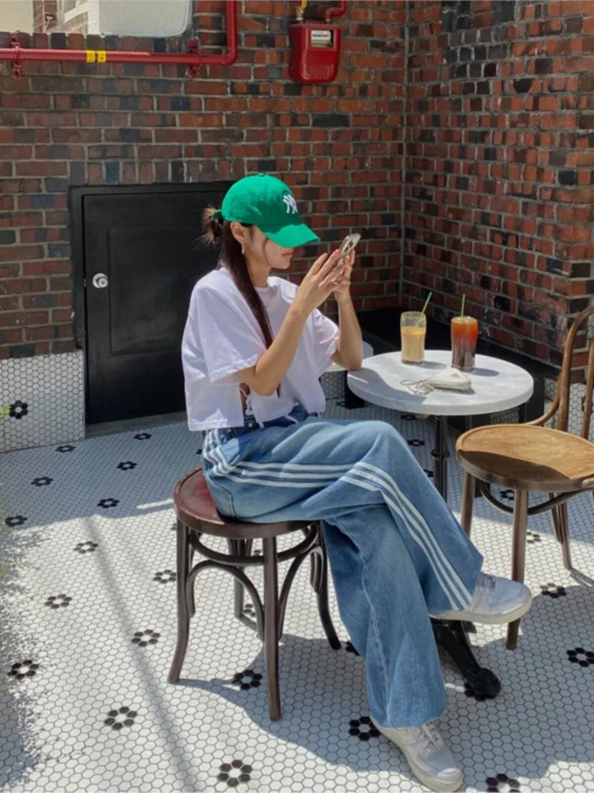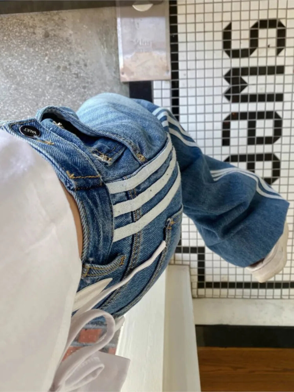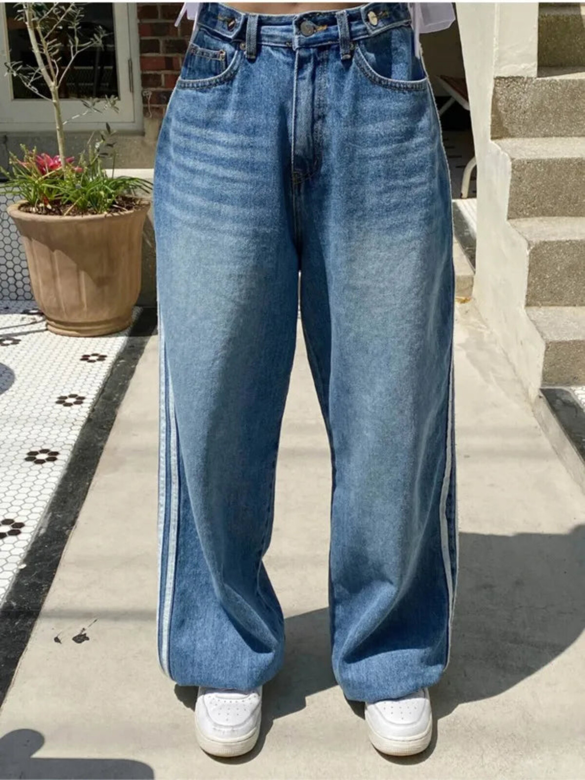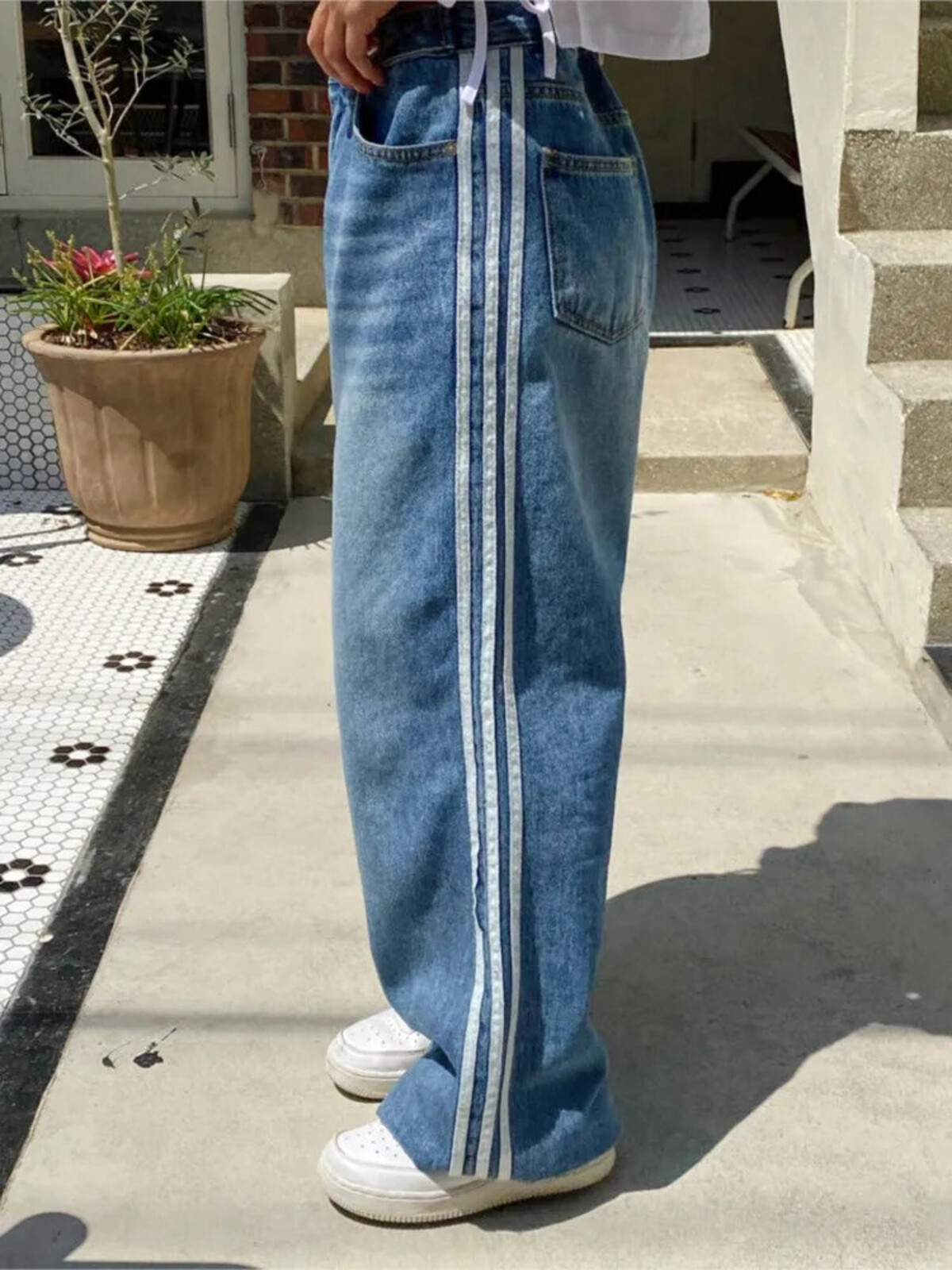 You know the classic dilemma: why choose between retro-cool sport and relaxed denim when you could have a glorious mashup of both? Enter the Stripe Flow Jeans, that rare unicorn of casual wear that manages to look like it could run laps around the track… if tracks were made of artfully faded denim. For a start, the cut’s fantastic - proper high waist, full length, true wide-leg drama. Generously oversized and slouchy in all the right places - perfect for those ‘I cannot be contained’ moods or for anyone just refusing to squeeze into rigid skinny jeans ever again.