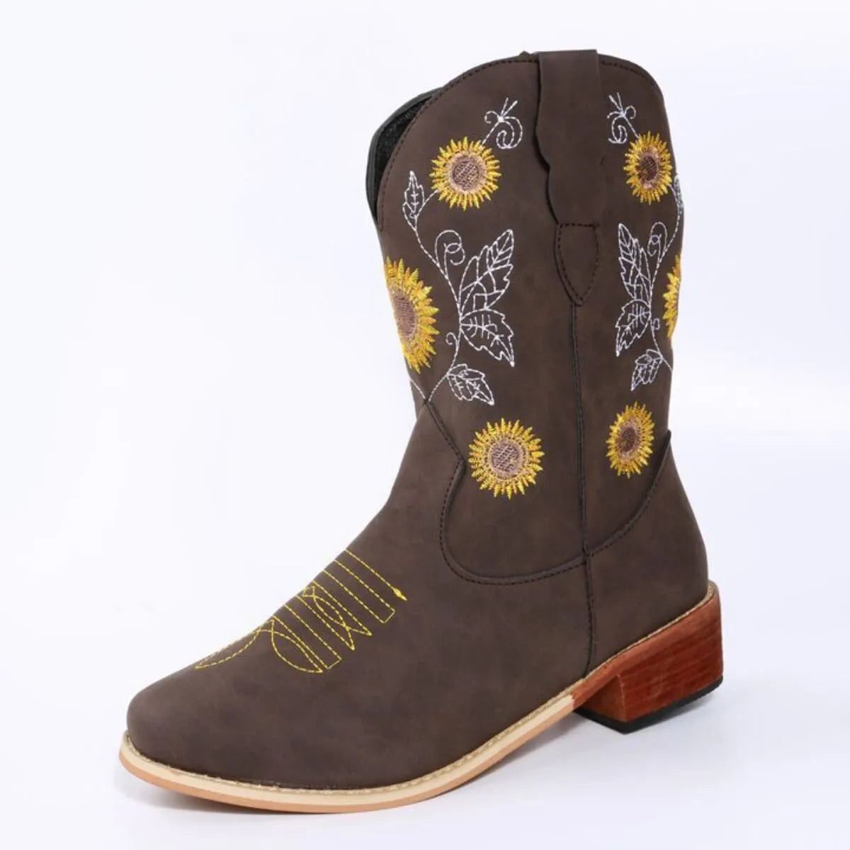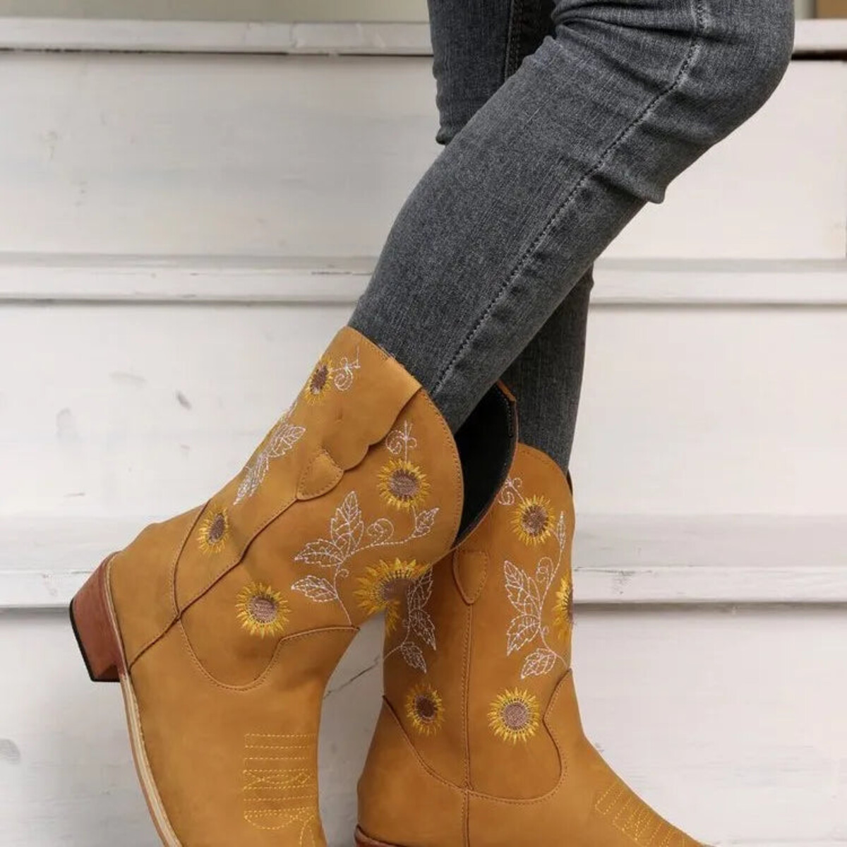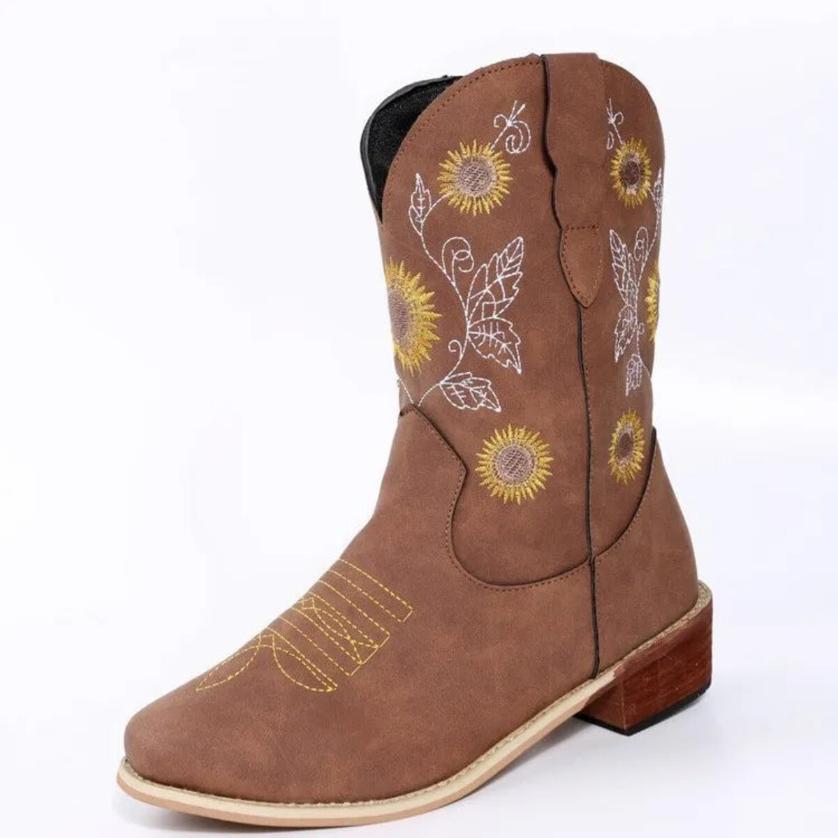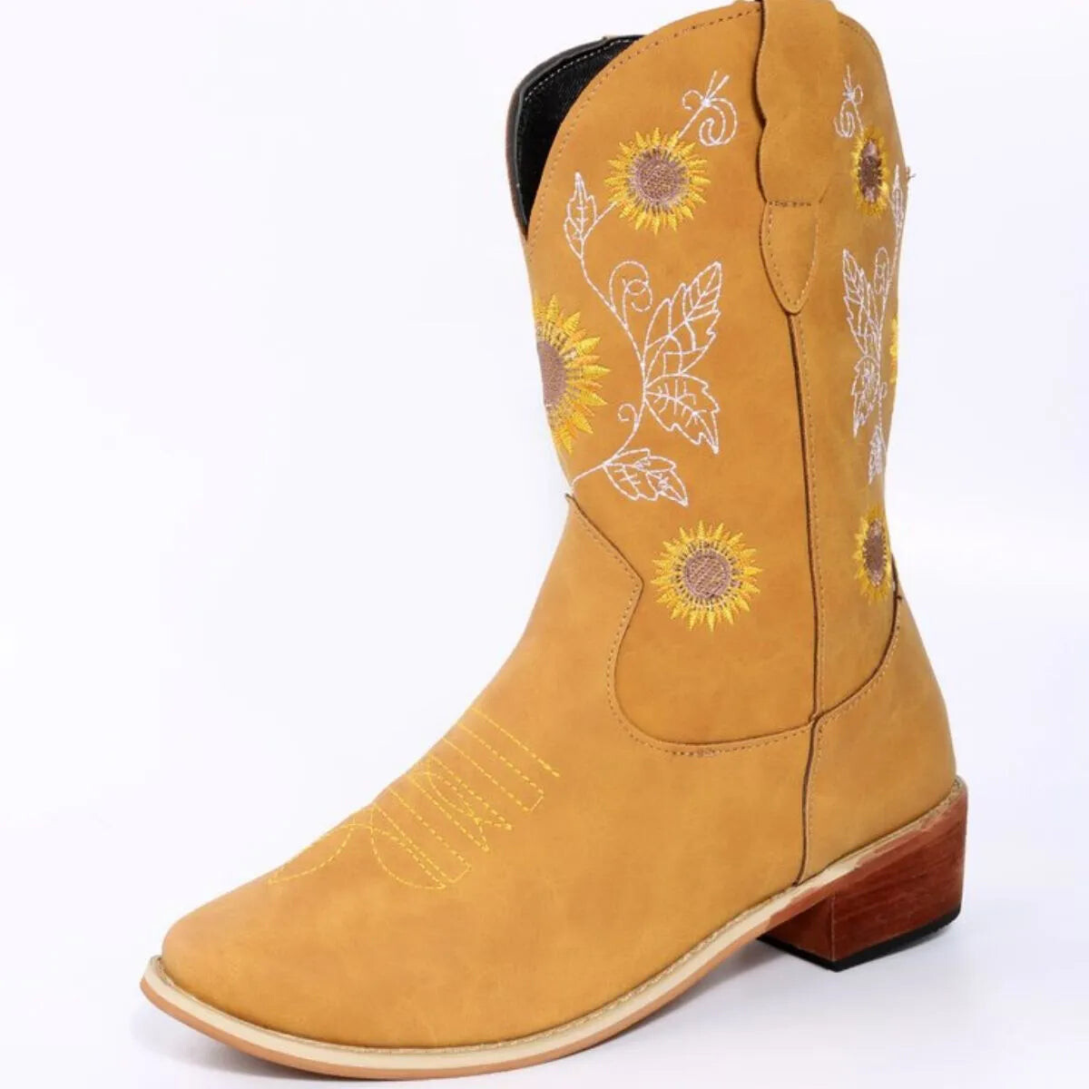 Could a person stroll into the wild west with these on and knock everyone’s boots off? Absolutely. But they’d be missing out on all the other places these Western-inspired boots could go - think farm-to-table lunch in the city or that little local concert where everyone has a rolling good time. Embroidered with eye-catching sunflowers and botanicals, these are a whimsical upgrade of your garden variety cowboy boots - no drab or dreary here. These start conversations. They’re a classic silhouette, except reimagined with playful embroidery, a soft square toe, and gently sloped block heels. The smooth leather-like uppers are finished with classic topstitching around the toe - an unapologetic nod to tradition. Step into them, take in the soft, comfortable insoles, and you’ll soon realise you might never want to step out of them again. Easy pull-on design at mid-calf height that sits comfortably around the ankles. Perfect for daily walks across the paddock or a fun day in the park followed by dinner and drinks - these versatile boots will not let you down (both literally and figuratively).