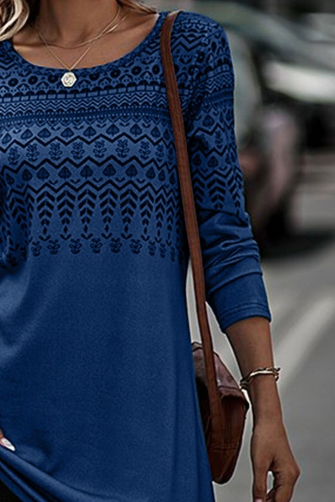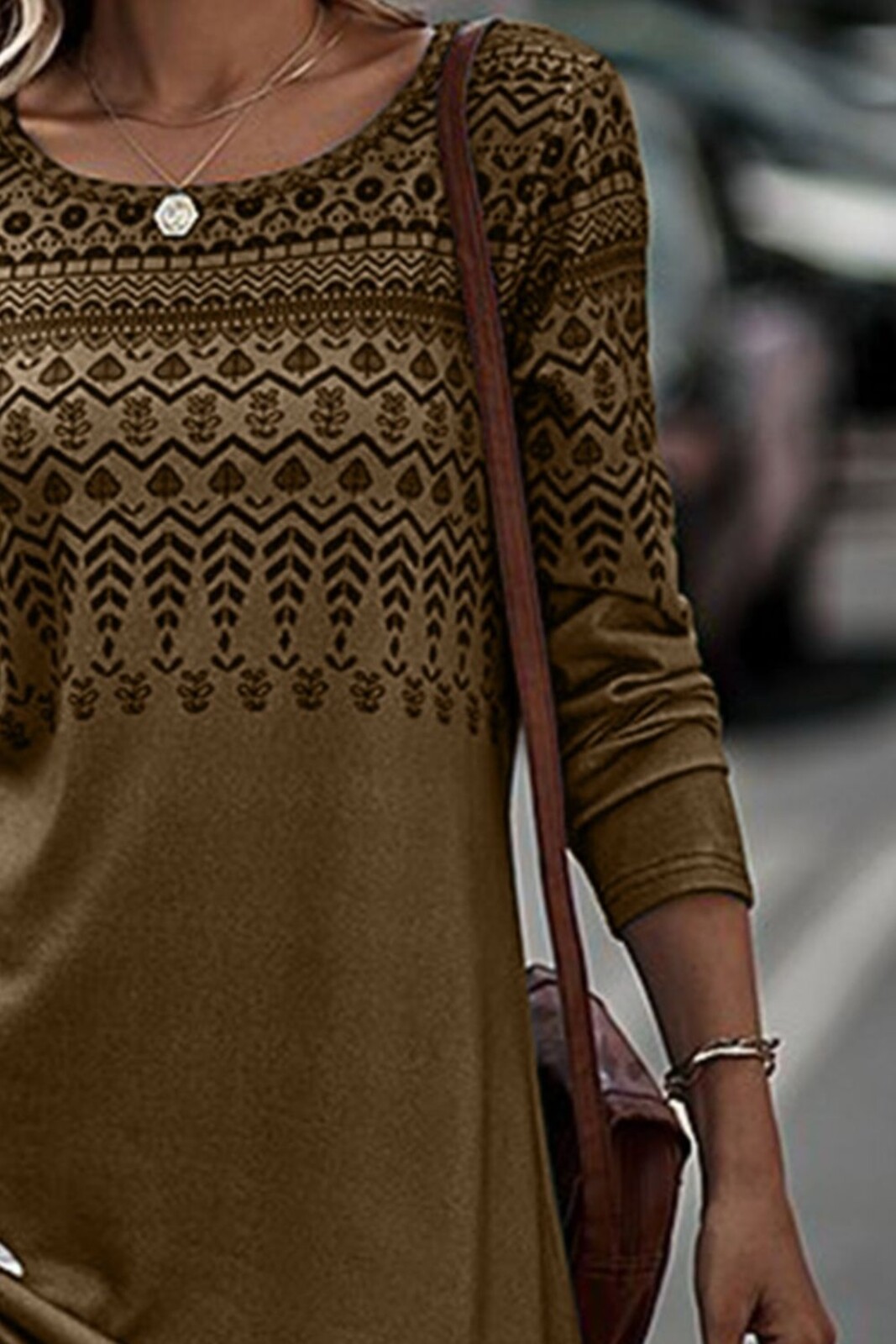 Some might call it a tunic dress. Others - more on the sweater side of the fence. Call it what you will, it’s got that soft, slightly stretchy knit that’s like a wearable invitation to “come in and get comfortable.” And this long-sleeved number delivers on detail. It’s got a finely-woven folkloric pattern of geometrics and botanicals - not too fussy, and cut off at just the right length (upper third) for all those 'who-are-you-wearing' questions without looking like something Aunt Janice crocheted in ‘79. That banded cuff on the sleeve was probably dreamed up by someone who hates fussing with sleeves when eating or gesturing animatedly (tick for both). The A-line silhouette is super flattering and easy, making it a cinch to wear as a mid-thigh dress or as a longer tunic over jeans. Top if off with a round neckline, simple straight hem, and a drape that says ‘I don’t iron’, and you’ve got yourself an earthtone classic worth grabbing in every colour variation you can handle.