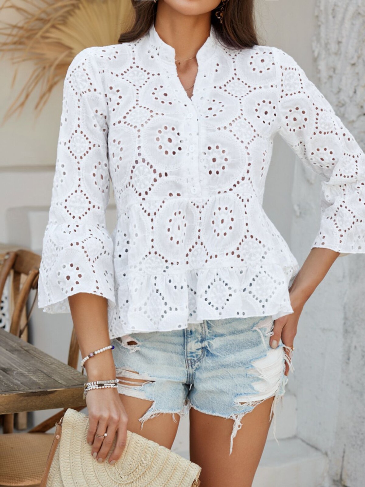 The expression ‘charm’ is a bit of an understatement when you first lay eyes on this Verdant Charm Embroidered Peplum Blouse. It’s all in the details, with intricate cut-out embroidery that covers the whole thing like an explosion in a thread factory - but in the best possible way. With its sheer cotton fabric and peplum silhouette, it’s giving casual cottage core for daytime drinks in the sun, and with a quick switch out of accessories it transforms into understated glam for evening cocktails on a warm night.