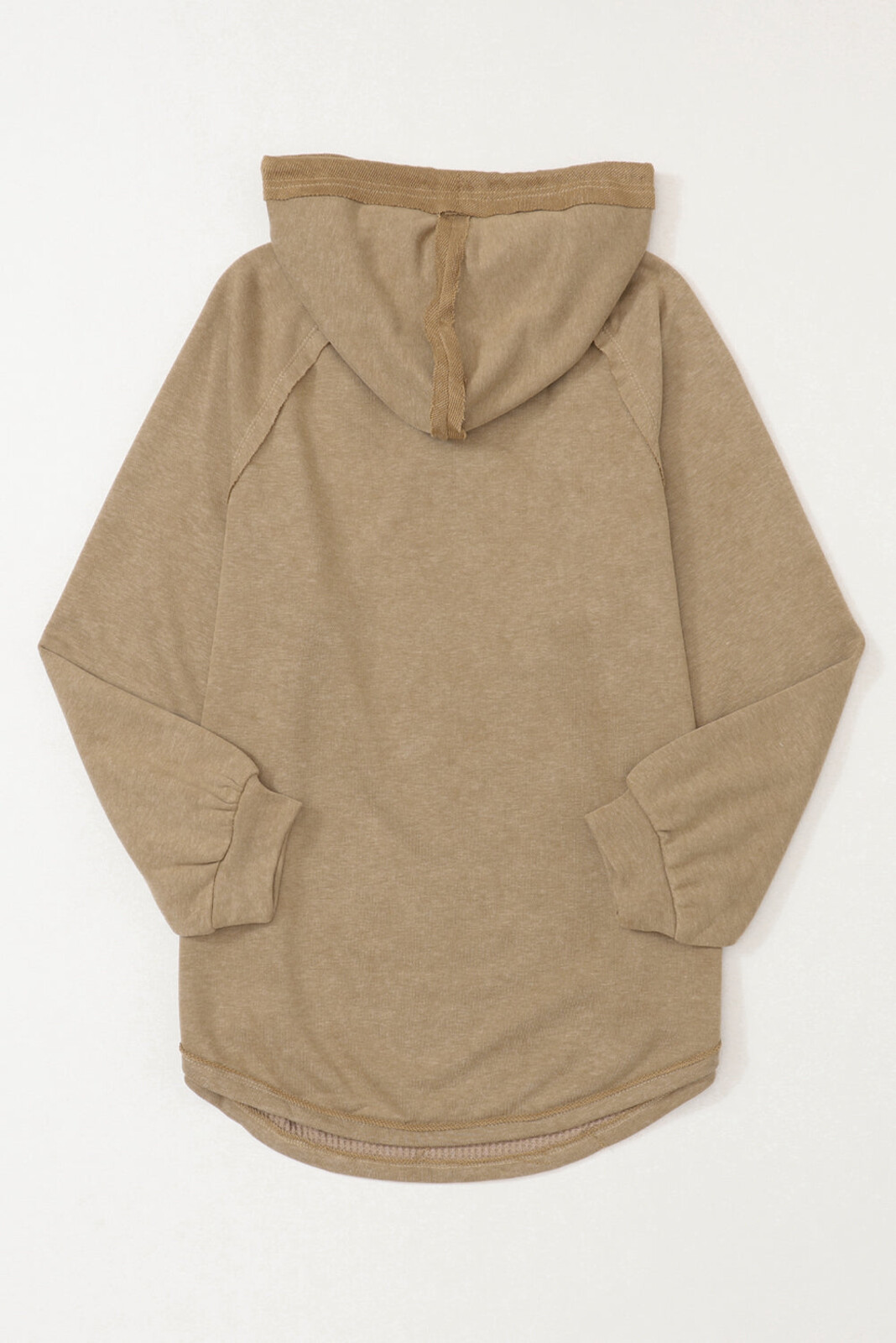 There’s something satisfying about the hand-feel too - 75% polyester and 25% cotton means it holds shape and washes well. Oh and that smooth finish on the back, sleeves and hood. Delicate curves along the shoulders so when you move, it flows. Voluminous sleeves gathered at the cuffs with plenty of casual drama. You probably won’t need to wash this as often as most hoodies thanks to the relaxed fit and durable fabrics. That would be one more bonus. But don’t quote us on that!